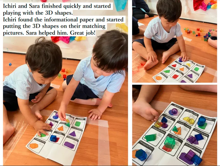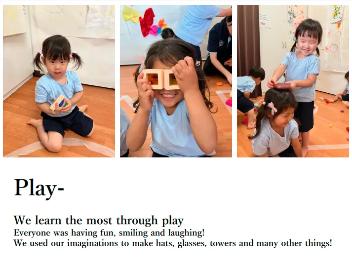 6月のReggioテーマは、「 Shapes/Numbers 」でした。日替わりで様々な形と出会い、形を組み合わせて新しい形を発見する驚きと楽しさに満ちた1ヶ月でした。
