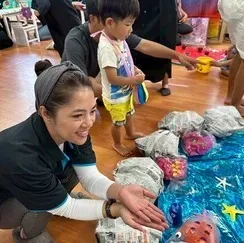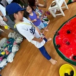 魚釣りやスイカのBoll toss、ロール転がしやわにわにパニック、ヨーヨー釣りを楽しんだ後は、羽飾りのあるフォトスポットで素敵な写真を沢山撮って、親子で沢山楽しんでいました。